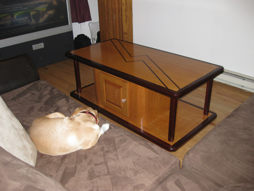 Notice the 4" radius corners on the center storage area and the Paduak inlay in the top. |