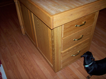 Hank carefully inspects the drawer face alignment & signals his approval.