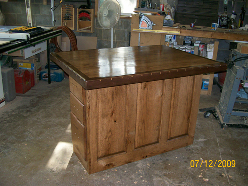 Each side of the cabinet is composed of raised panels set in frames constructed in the traditional "Rail and Stile" configuration. The material is 3/4" thick (+) Red Oak. |