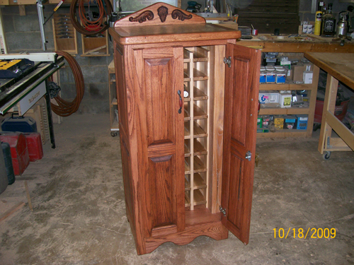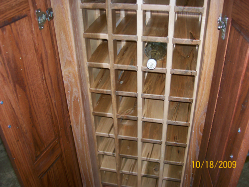Custom built Wine Vault for Harold "The Wood Guy". He makes his own wine and needs a way to secure it from his many friends. |