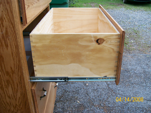 And thru dovetails in Baltic Birch Plywood on all four corners of all the drawers. If you look real close, you can see the dust panel that lives between the drawers. |