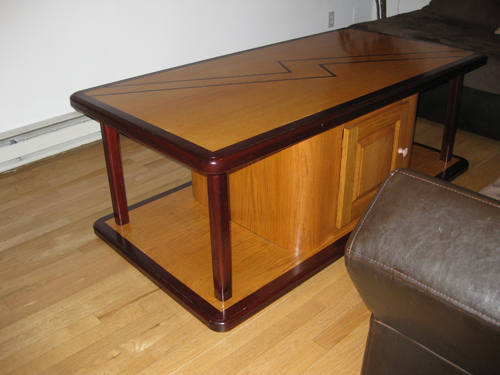 Notice the 4" radius corners on the center storage area and the Paduak inlay in the top. |