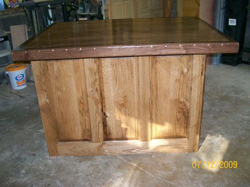Each side of the cabinet is composed of raised panels set in frames constructed in the traditional "Rail and Stile" configuration. The material is 3/4" thick (+) Red Oak. |