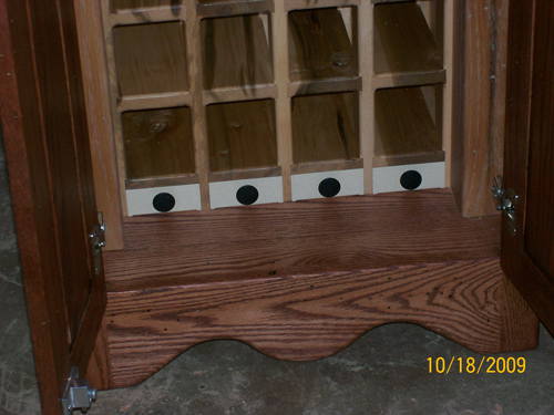 Custom built Wine Vault for Harold "The Wood Guy". He makes his own wine and needs a way to secure it from his many friends. |
