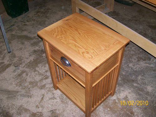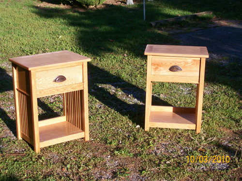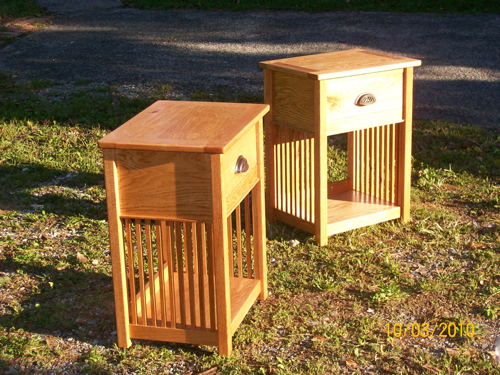 Another variation on the night stand theme. These were crafted to complement some existing bedroom furniture. They have a bit of the Craftsman style in them. The wood is Red Oak, no surprise there I guess. |