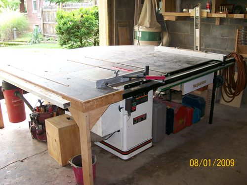 | Back to Top | The table saw also houses a 2.5HP router & a fence rail is mounted to the side of the table to provide a guide. |