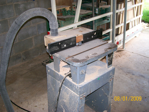 | Back to Top | This is our shaper with the panel raising tooling. This tool is not changed or adjusted unless it needs sharpened or replaced. It is on a mobile base and a large shop vac supplies the chip & dust control. |