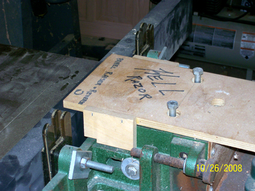 MATH Let's make a door and let's decide that it needs to be 12"W x 18"H. Overall door height is the same dimension as the length of the stiles, couldn't be easier right? OK, so jot that set of numbers down on your cutlist as 2pcs @ 2.38" x 18". Next, we will calculate the rail length as follows. Door width (12") minus 2 x the stile width (2.38") plus 2 x the offset (.38"). Hopefully you arrived at 8". Add this set of numbers to your cutlist as 2 pcs @ 2.38" x 8". Now we are sailing. On to the panel size. The width of the panel will be the same as the length of the rails, minus an eigth of an inch (my normal allowance) to allow for seasonal movement of the wood. The length of the panel will be computed as the overall door height (18") minus 2 x the rail width (2.38") plus 2 x the offset (.38"). This ciphers out to 14" right? So add this to your cutlist as 1 pc @ 7.88" x 14". If you do not have a board wide enough then the first actual hands on work will be to glue up for the panel. Nothing more than square edges where your boards are meeting, some Titebond II and a couple of clamps are required for this. Glue it, clamp it, clean up the squeeze out and set it aside to cure. Then get the rest of the material on your cutlist cut to size. If this is your first dance with rail and stile tooling, an extra piece or two wouldn't be out of line. |