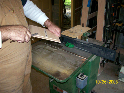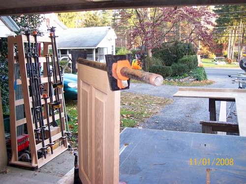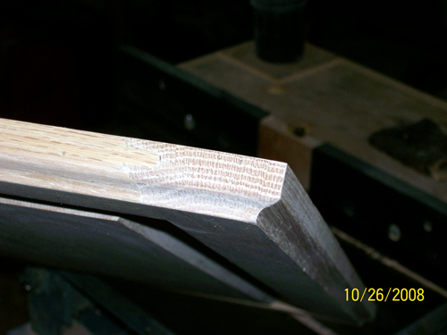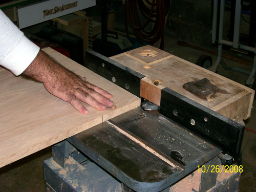 DOOR After a dry fit to make sure everything fits, it is time for the glue and clamps. Lay a stile on your assembly table with the face towards you and the dado looking up. Place the 2 rails in your hand, back to back and apply glue, spread it into all the joint features with a bush and then flip them end for end and repeat. Now, attach 1 rail to the stile on the bench making the ends flush and the assembly should be eyeballed to 90 degrees. Install the raised panel and then the second rail holding it flush with the end of the stile. Finally, attach the second stile flush on both ends with the rails and give each end a rap with a dead blow mallet. Now you will need to clamp up the assembly until the glue cures and clean up any squeeze out at the joints. I advise that the clamps span the door over the centerline of top and the bottom edges so that the force they apply holds the door straight. ![]() I have seen some instances where clamping across the front or back of the door will apply unequal force and create an out of plane (crowned, bowed, doesn't lay flat) door assembly. Another thing to consider when clamping is to apply masking tape to your clamp bar where it crosses over the glued joint. It will keep your clamp clean and prevent any discoloration of the wood due to chemical reactions between the acids in the wood and the moisture in the glue. After the glue is cured, I will normally run the top and bottom edges of the door through the saw, removing a thirty second or so on each edge to expose a tight joint line. ![]() |