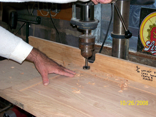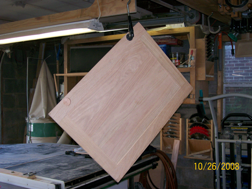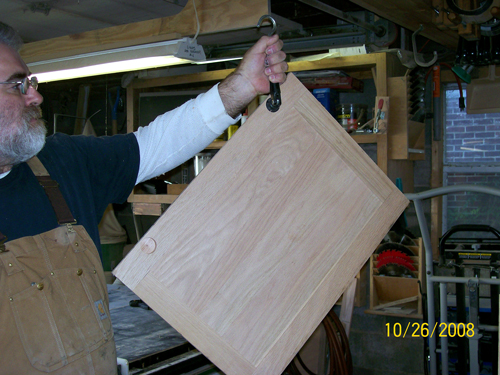 DOOR Now is the time to bore for your hinges... ![]() ...if you are using the concealed European style, drill for your handle and cut any edge detail on the door perimeter. ![]() Let me add here, that a small ogee detail on the door edge... ![]() ...will reduce the weighty appearance of your door and add a touch of elegance, further enhancing the complex appearance of your joinery. ![]() Now your door is ready for final sanding and your favorite finish and seal coat. If you are staining your door, use a blow gun on an air hose to force stain into the dado from front and back. That way, when the center panel shrinks in the heating season, raw wood will not be visible. Now to close, here is an unsolicited, unpaid product endorsement. Rockler (www.rockler.com) offers an item (37603) they call the "Sure Hook". It fits perfectly into the 35mm counterbore for the European style hinges. ![]() It gives you a great way to hang your door to spray the seal coat on all surfaces at once. I love them, but only to the point where I use 1 per door. I am still a bit of a tightwad after all and 2 per door seems way too civilized. ![]() |